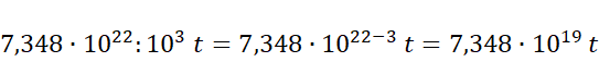 Zapis liczby w postaci notacji wykładniczej to: gdzie to liczba należąca do przedziału , a to liczba całkowita. Aby zamienić kilogramy na tony (1000 kg = 1 t) należy podzielić liczbę kilogramów przez 1000 ( czyli przesunąć przecinek o 3 miejsca w lewo).