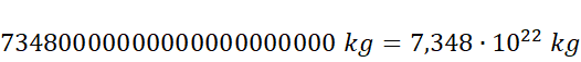 Zapisz 73 480 000 000 000 000 000 000 kg w notacji wykładniczej.