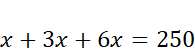 Przez x oznacz kwotę Michała. Skoro Karol dostał 3 razy więcej, to jego kwotę oznacz przez 3x. Jeśli Ania otrzymała dwa razy więcej niż Karol, to ma 6x. Suma tych kwot wynosi 250. Wyznacz z równania x, a następnie oblicz pieniądze każdej osoby.