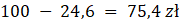 Następnie, odejmij resztę od 100 zł, które pan Izydor wręczył pani kasjerce:
