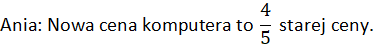 Cena pewnego komputera spadła o 20%, co skomentowali uczniowie. Oceń, czy podane niżej komentarze trafnie opisują obniżkę ceny.