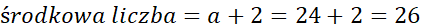 Znając zależności między podanymi liczbami, ułóż i oblicz równanie, aby ustalić wartość liczby a oraz środkowej liczby tego ciągu.