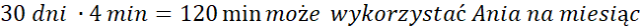 Oblicz, ile darmowych minut miesięcznie ma do wykorzystania Ania, a następnie oceń na ile dni wystarczy jej minut, jeżeli będzie rozmawiać częściej.