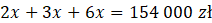 Zauważ, że suma stosunków kwot wpłaconych przez każdego z wspólników jest równa cenie auta.