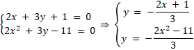 Przekształcamy układ wyznaczając y po lewej stronie równania. Następnie możemy przyrównać do siebie prawy strony obu równań i wyznaczyć niewiadomą x. Dla wyznaczonych wartości określamy niewiadomą y.