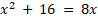 B. x2 – 16 = 0