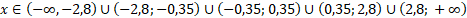 Wyznacz dziedzinę wyrażenia wiedząc, że mianownik musi być różny od zera. Przybliż wykluczone wartości, zapisz sumę przedziałów, do których należy x i sprawdź, który z podanych przedziałów się w niej zawiera.