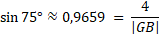 W celu podtrzymania masztu, należy zamocować cztery liny do jego górnego punktu, a następnie przymocować je do podłoża pod kątem α = 75°. Punkt mocowania na maszcie znajduje się na wysokości d = 4 m, a na mocowania liny do podłoża należy doliczyć 2,4 m. Zadaniem jest wyznaczenie długości każdej z lin.
