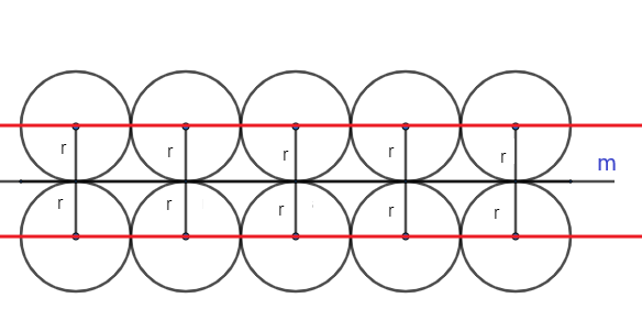 Dana jest prosta m. Jaka figura powstaje z środków wszystkich okręgów o promieniu r, które są styczne do tej prostej?