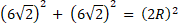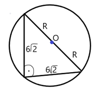 Skorzystaj z twierdzenia Pitagorasa, aby obliczyć długość R. Następnie oblicz długość okręgu opisanego o promieniu R = 6.