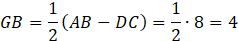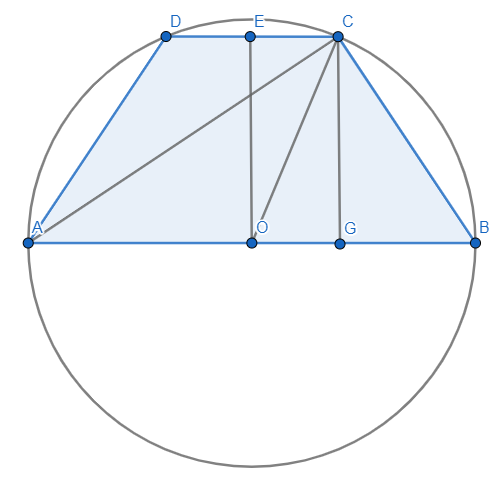 Zauważ, iż promień wynosi połowę dłuższej podstawy, czyli 10. Stosując twierdzenie Pitagorasa: