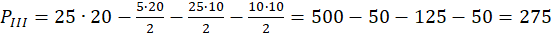 Aby obliczyć pole figury III od pola prostokąta (wymiary 20 mm x 25 mm) odejmij pola trzech trójkątów: