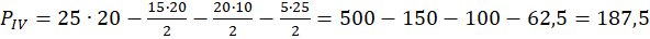 Aby obliczyć pole figury IV od pola prostokąta (wymiary 20 mm x 25 mm) odejmij pola trzech trójkątów: