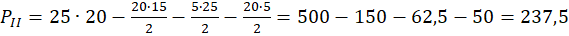 Aby obliczyć pole figury II od pola prostokąta (wymiary 20 mm x 25 mm) odejmij pola trzech trójkątów: