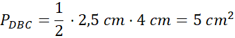 Pole trójkąta ABC jest równe , a pole trójkąta DBC jest równe .