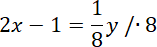 Wyznacz, jakie pary liczb spełniają równanie 2x – 0,125y = 1.