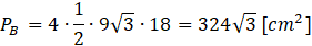 Wyznacz pole powierzchni całkowitej ostrosłupa prawidłowego czworokątnego, w którym każda krawędź ma długość 18 cm.