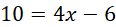 Aby znaleźć pierwszą współrzędną punktów E oraz F, musisz obliczyć, dla jakiego x wartość funkcji f(x) = 4x – 6 wynosi 10 oraz -30