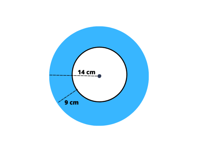 Zauważ, że szerokość pierścienia to różnica długości promieni. Długość okręgu, to inaczej obwód okręgu i obliczamy ją ze wzoru: