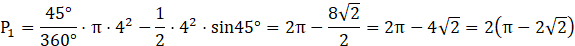 Cięciwa AB podzieliła okrąg o środku O i promieniu 4. Wiemy, że pole