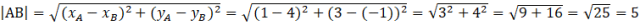 W tym zadaniu musisz wyznaczyć długość odcinka AB, gdzie A = (1, 3), B = (4, -1).