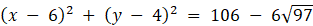 Wyznaczoną długość promienia i współrzędne punktu S powinieneś podstawić do równania okręgu.