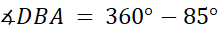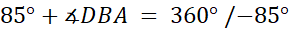 Kąt ostry DBA o mierze 85º oraz kąt wklęsły DBA o mierze 275º tworzą razem kąt pełny.