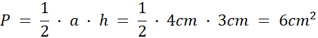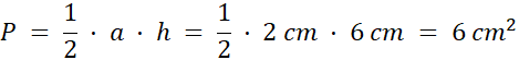 Jego wysokość to 6 cm, a jego podstawa to połowa krótszego boku prostokąta, czyli: