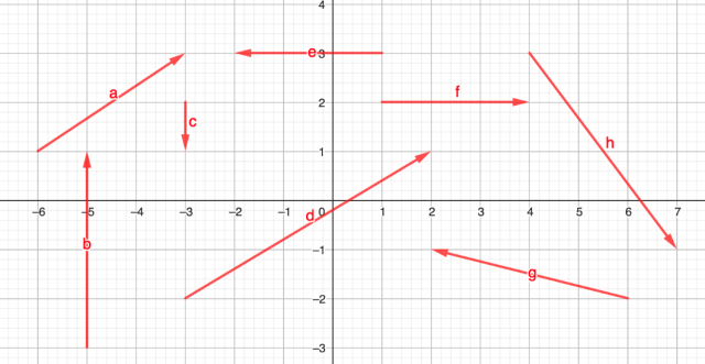 W tym zadaniu musisz odczytać współrzędne każdego wektora pokazanego na rysunku.