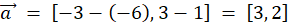 Oblicz współrzędne każdego wektora poprzez odjęcia początkowych współrzędnych od końcowych