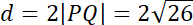 Zauważ, że odcinek łączący środki sąsiednich boków kwadratu ma długość połowy przekątnej. Zatem oblicz ile wynosi długość odcinka PQ:
