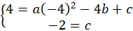 Zacznij od wyznaczenia równania prostej, która przechodzi przez punkt (-4, 4) i należy do niej punkt (0, -2). Kolejno przyjmij wartość a. Następnie stwórz układ równań, aby znaleźć wartości b i c. Na koniec zapisz przykładowy układ równań.