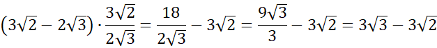 w wyrażeniu podanym w treści zadania wstaw podane liczby i oblicz wynik powstałego działania. Liczbę znajdującą się za nawiasem pomnóż przez każde wyrażenie w nawiasie. Na koniec usuń niewymierność z mianownika w powstałym ułamku, czyli pomnóż jego licznik i mianownik przez wartość pierwiastka z mianownika.