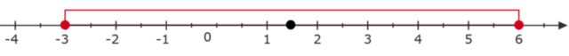 Zauważ, że szukany przedział jest oddalony od liczby 1,5 o maksymalnie 4,5 jednostki. Więc jego krańcowe liczby to suma i różnica liczby 1,5 z liczba 4,5. Zaznacz szukany przedział na osi i zapisz go.