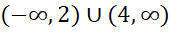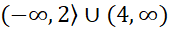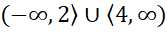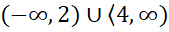 Zauważ, że do szukanego przedziału należą wszystkie liczby rzeczywiste poza liczbami z przedziału . Więc będą to liczby mniejsze lub równe 2 oraz większe od 4.