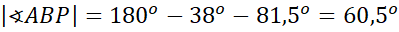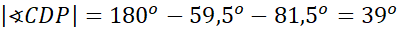 i wyznacz miarę kąta ABP. Zauważ, że kąty APB i CPD mają równe miary, ponieważ są to kąty wierzchołkowe. Następnie oblicz miarę kąta CDP, ponownie skorzystaj z tego, że suma miar kątów w trójkącie wynosi