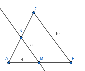W trójkącie ABC poprowadzono prostą równoległą do boku BC, która przecięła boki AB i AC w punktach M i N. Jeśli BC ma długość 10, MN wynosi 6, a AM wynosi 4, to jaką długość ma bok AB?