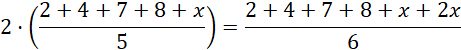 Skoro wartość średnią zestawu danych 2, 4, 7, 8, x jestrówna n, a zestawu 2, 4, 7, 8, x, 2x jest dwukrotnie większa, to należy porównać dwukrotnie powiększoną średnią pierwszego zestawu do średniej arytmetycznej drugiego zestawu, aby wyliczyć x.