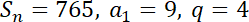 Napisz, z ilu wyrazów składa się skończony ciąg geometryczny o sumie wyrazów równej 765, pierwszym wyrazie równym 9 oraz ilorazie równym 4.