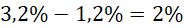 Wiedząc, iż zawartość tłuszczu w mleku obniżono z 3,2% o 1,2 punktu procentowego. Podaj, o ile procent mniej tłuszczu znajduje się w takim odtłuszczonym mleku: