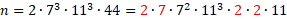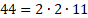 Zaznacz kolorem powtarzające się w obu przypadkach liczby – są one wspólnymi dzielnikami. Teraz pomnóż je przez siebie, by otrzymać największy wspólny dzielnik. W przypadku liczby b rozłóż dodatkowo liczbę 44 i 14 na czynniki pierwsze.