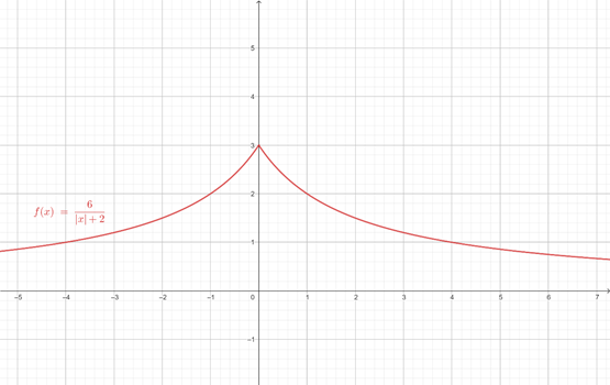 Narysuj funkcję, stosując się do podanych kroków. Otrzymana funkcja jest symetryczna względem OY. Zauważ, że jedyne wartości całkowite to 1, 2 i 3.