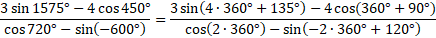 Skorzystaj ze wzorów redukcyjnych. Zauważ, że jeśli miara kąta zawiera w sobie k pełnych obrotów, to je gubimy i zostawiamy jedynie dopełniającą miarę kąta.