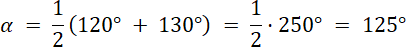 Na rysunku obok dany jest okrąg o środku O, dwa kąty środkowe i kąt wpisany