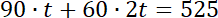 Ustal, ile czasu trwała cała podróż, jeśli samochód pokonał trasę o długości 525 km, pierwszy odcinek trasy przebył z prędkością 90 km/h, a przejechanie drugiego odcinka z prędkością 60 km/h zajęło mu dwa razy więcej czasu niż przejechanie pierwszego odcinka.