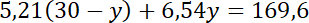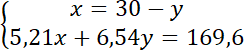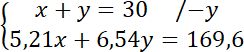 Ustal, ile monet 2-złotowych, a ile 5-złotowych zebrano, jeśli skarbnik klasowy zebrał 30 monet, wszystkie monety ważyły łącznie 169,6 g oraz moneta 2-złotowa waży 5,21 g, a 5-złotowa– 6,54 g.