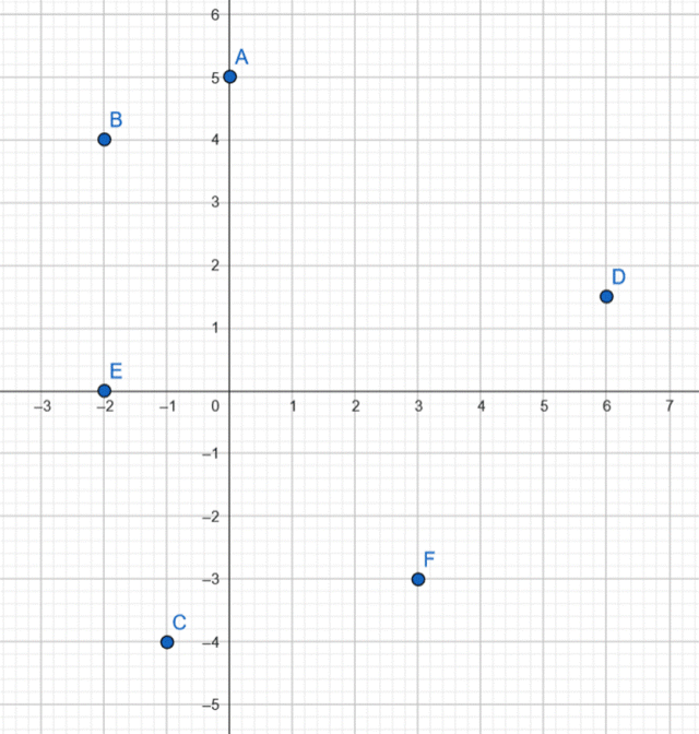 Każdy z podanych punktów zaznacz w układzie współrzędnych. Zauważ, że w zapisie punktu: