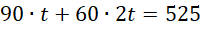 Ustal, ile czasu trwała cała podróż, jeśli samochód pokonał trasę o długości 525 km, pierwszy odcinek trasy przebył z prędkością 90 km/h, a przejechanie drugiego odcinka z prędkością 60 km/h zajęło mu dwa razy więcej czasu niż przejechanie pierwszego odcinka.