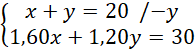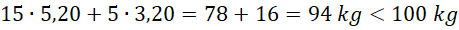 Ustal, czy całą dostawę można przewieźć wózkiem, którego dozwolona ładowność jest równa 100 kg, jeśli w hurtowni wafle są pakowane w większe pudełka, a cukierki – w mniejsze, pudełko z waflami waży 5,20 kg, a z cukierkami 3,20 kg, do sklejenia większego pudełka zużywa się 1,60 m taśmy, a do mniejszego 1,20 m, zaś na zamówienie jednego ze sklepów przygotowano transport 20 pudełek z tymi słodyczami i zużyto do tego 30 m taśmy.
