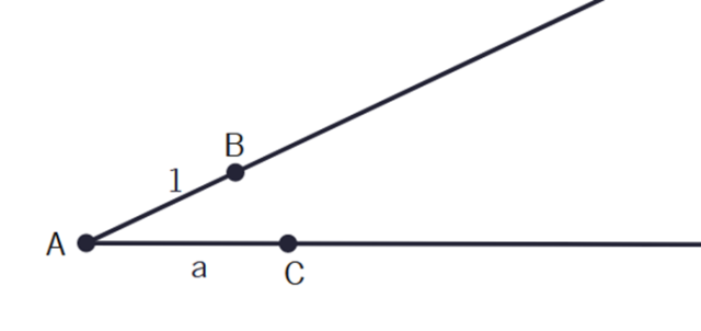 Narysuj dowolny kąt i umieść na jednym jego ramieniu odcinek długości 1, a na drugim długości
